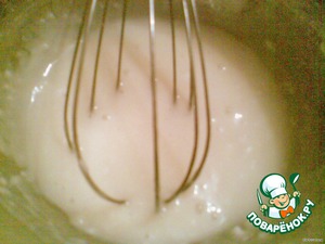 отдельно в полстаканe молока разводим муку.. взбиваем венчиком до однородности...