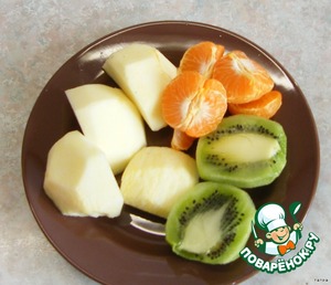 Измельчаем с помощью блендера фрукты,добавляем измельченный чеснок.