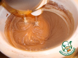 добавляем просеянную муку, какао, разрыхлитель. Все хорошо перемешиваем.