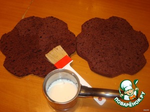 Как только закипит, убираем с плиты и пропитываем коржи. -