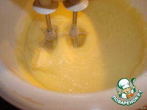 Как только крем будет готов, перекладываем его в миксер, добавляем масло и взбиваем 5 мин. -