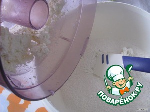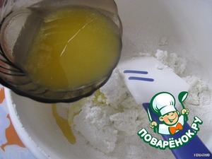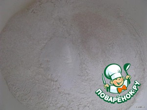 Муку перемешать с разрыхлителем, ванилином и сахаром