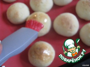 Готовые булочки смазать мёдом и отправить на 5 минут в духовку