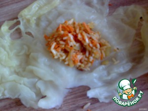 На мягкий лист капусты кладем начинку и заворачиваем.
