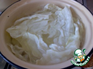 Капустный кочан разделить на листья и отварить их до мягкости.