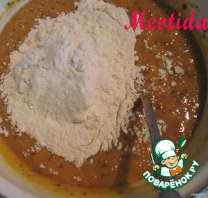Добавляем в медовую смесь постепенно муку