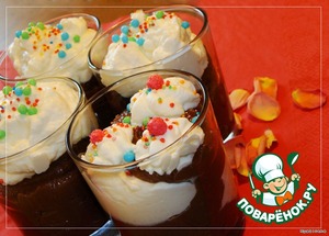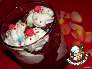 Или пудинг внизу, а сверху сливочный крем с украшениями.