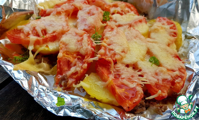 Очень вкусная запеканка из помидоров с мясом.. Те кто любит фаршированные овощи.. думаю оценят этот вариант.. Возни меньше.. результат... Ну вы сами понимаете))Не вкусно быть не может)))