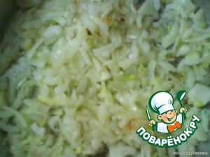 2 головки лука мелко нарезаем и обжариваем до золотистой корочки