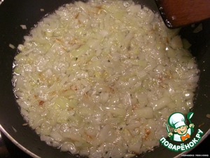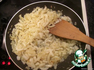 Высыпаем нарезанных кальмаров в жарящийся лук, добавляем кориандр и соль, обжариваем 1 мин. и ставим остывать.