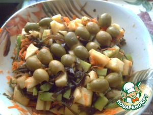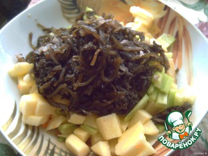 • Добавляем морскую капусту. Солим по вкусу. Перемешиваем.