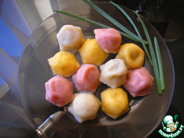 Появилась идея сделать цветные пельмешки для дочки. Вот что получилось.