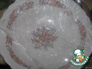 Салатник или форму с круглым дном, выстелить пищевой плёнкой.