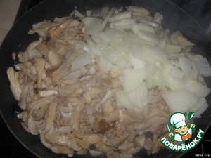 Нарезать вешенку соломкой, обжарить в небольшом количестве растительного масла.