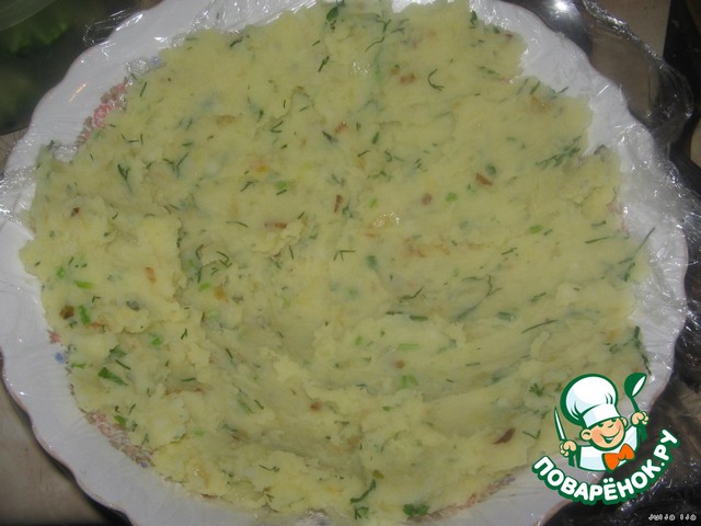 Выложить 3/4 пюре так, чтобы были покрыты все стенки формы или салатника.