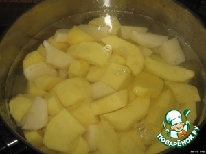 Отварить картофель до готовности. Воду в процессе варки подсолить, по вкусу.