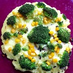 У брокколи, отрезать ножки, если они длинные. Выложить её сверху на пюре, слегка вдавливая. Промежутки украсить кукурузой. Я брокколи не отваривала, так как в нашей семье её любят слегка "al dente". Если Вы не поклонник такой "хрустящести", лучше отварить капусту в подсоленной воде, до полуготовности.