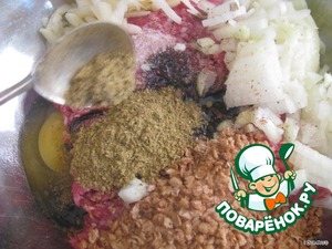 Фарш+яйцо+гречневые хлопья+картофель+сол ь+перец
