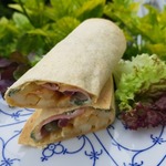 Берем лист лаваша, смазываем майонезом, посыпаем сыром и сверху зеленью, накрываем вторым листом, тоже смазываем соусом, сверху выкладываем картошечку, колбаску с ветчиной, огурчик и закручиваем в рулет.