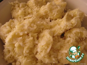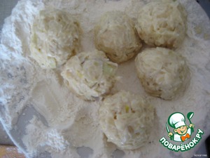 Мокрыми руками делаем несколько шариков (в зависимости от того, сколько поместится на сковороде) и обкатать в муке.