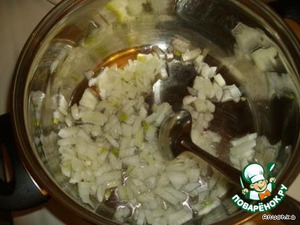 Прямо в кастрюле обжариваем на масле мелко порезанный лук.