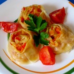 Т. к. пароварки у меня нет, я в кастрюлю налила воды, она закипела, рулетики сложила в дуршлаг и поставила на кастрюльку, закрыть крышкой.