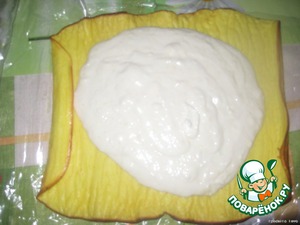 Распределяем начинку и не скручивая выносим минут на 20-30 для лёгкого застывания начинки.