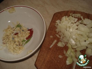 Лук и чеснок мелко нарезать.