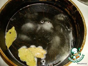 На раскаленной сковороде на масле обжариваем лавровый лист, перец горошком и соль.