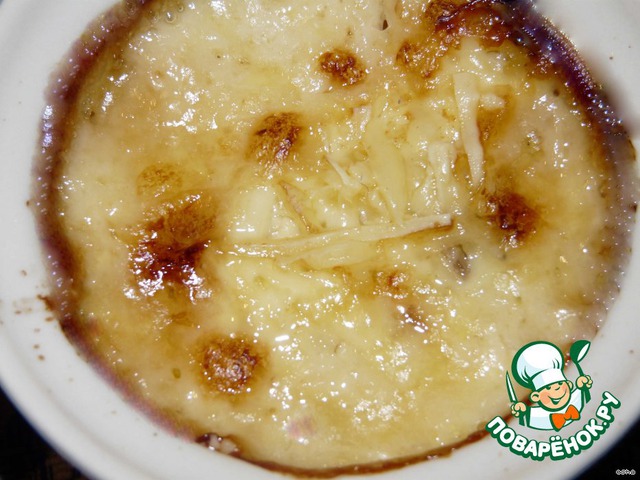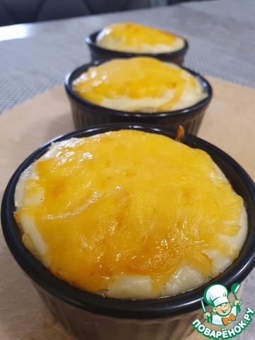 В формочки для жульена разложить грибы с луком, всыпать сыр, перемешать немного. Залить соусом.