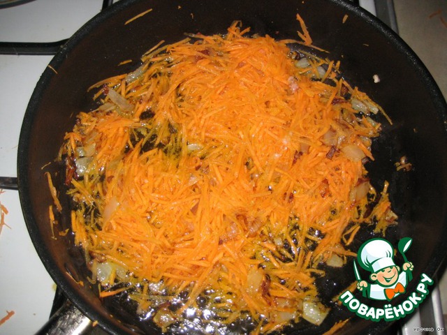 В это время к луку добавить морковь и обжарить