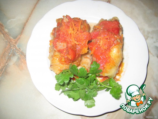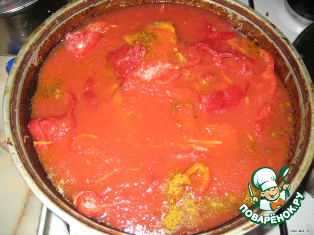 Я залила все томатом, можно развести кубик куриный в 0,5 л воды - тоже вкусно. И протушить в течениe 30 минут (после закипания)