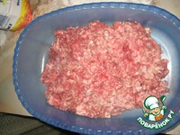 Из теста скатать тонкий пласт, чем тоньше, тем лучше. На него выложить тонким слоем фарш. Специи на ваш вкус. |