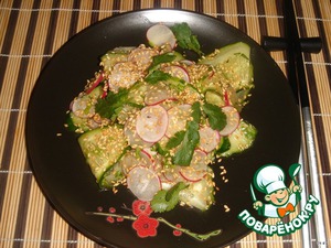 Увидев состав этого салата, Вы можете сказать: Ну какой же он японский... это наш традиционный весенний салатик.. огурчики... редисочка... еще бы сметанки или майонеза... " Но вот если слегка изменить заправку, добавив японского колорита салату, то Вы получите уже совершенно другой оттенок вкуса! Особенно это актуально сейчас, в пост, когда хочется разнооброазить свое меню так, чтобы это не только соответствовало канонам, но и было вкусно.