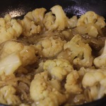 Добавить разобранную на соцветия цветную капусту, влить рыбный и соевый соус, добавить сахар, куркуму и овощной бульон. У меня рыбного соуса не было, заменила тайским кисло-сладким соусом.