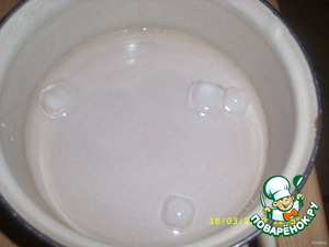 Для кляра берём ОЧЕНЬ холодную воду (я добавила лёд) и смешиваем с мукой. Чем холоднее вода, тем хрустящей будет корочка