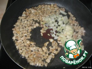 Ножки нарезать мелкими кубиками, обжарить на растительном масле.