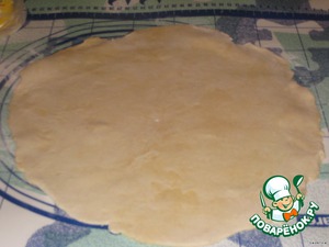 Достаем тесто из холодильник и раскатываем в пласт толщиной около 7 мм по форму чуть больше формы на 2 см примерно.