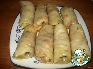 В предварительно припущенные капустные листья завернуть голубцы обычным способом