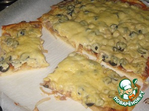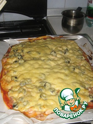 Тесто вот по этому рецепту http://www.povarenok .ru/recipes/show/216 84/ раскатать и смазать кетчупом