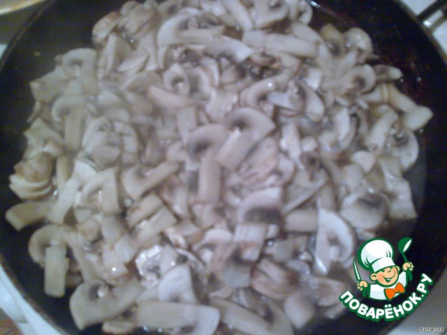Все залить жидкостью от тушеных грибов (у меня ее было 3/4 стакана)