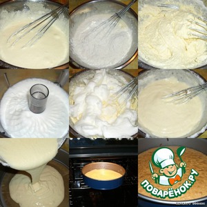 пока нам комбайн взбивает в крепкую пену белки, мы взбиваем желтки с сахаром,