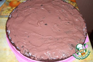 первый коржик - у меня шоколадный - пропитали сметанным кремом