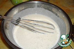 В остывшую массу добавляем муку, разрыхлитель, ванильку, вымешиваем,