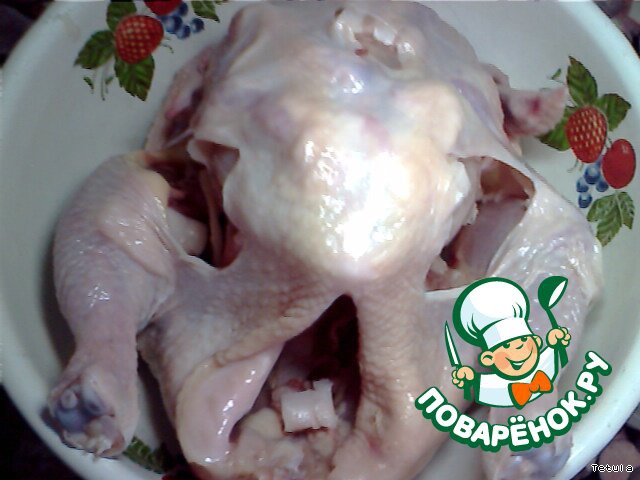 • Тушку моем, удаляем остатки перьев. Выбираем кусочки жира.