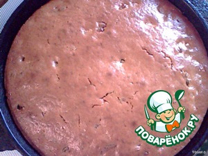 Тесто выливаем в сковороду, и выпекаем 30 мин. Пирог становится богатого коричнево-охристого цвета и начинает отставать от сковороды с боков.