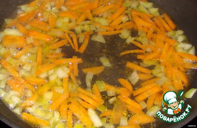 Лук и морковь мелко режем.. и тушим в небольшом колличестве воды (Или можно предварительно обжарить на растительном масле)