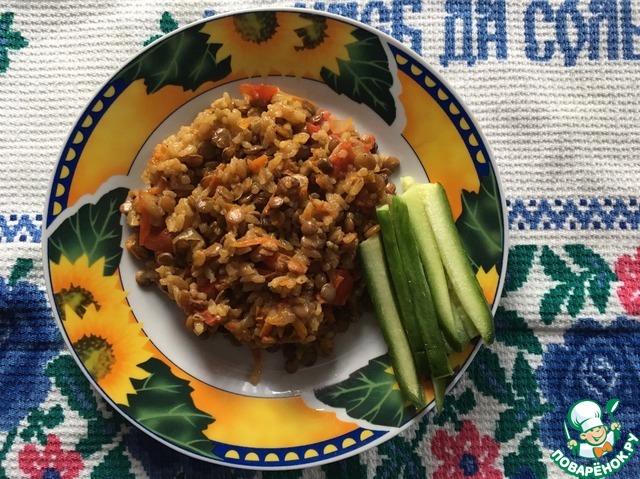 Вчера был плов с нутом... Сегодня совсем другой.. с чечевицей.. Вкусно... и что не маловажно полезно)))На конкурс "Постимся с "Moulinex"".