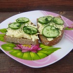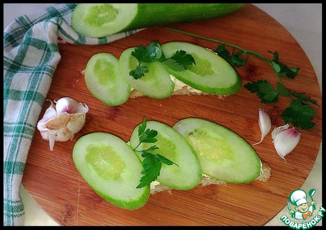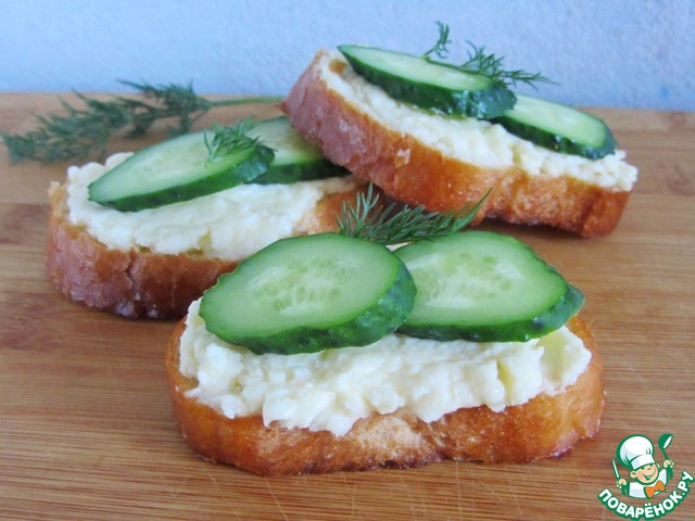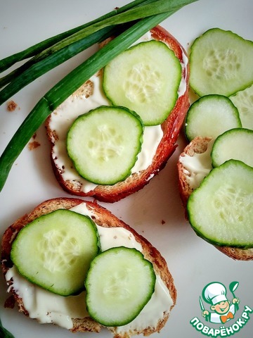Вкусный бутер с плавленым сыром, чесноком, майонезом и огурцом! Готовится быстро и просто