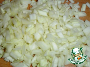 Лук и грибы порубите, ошпарьте и отожмите, -